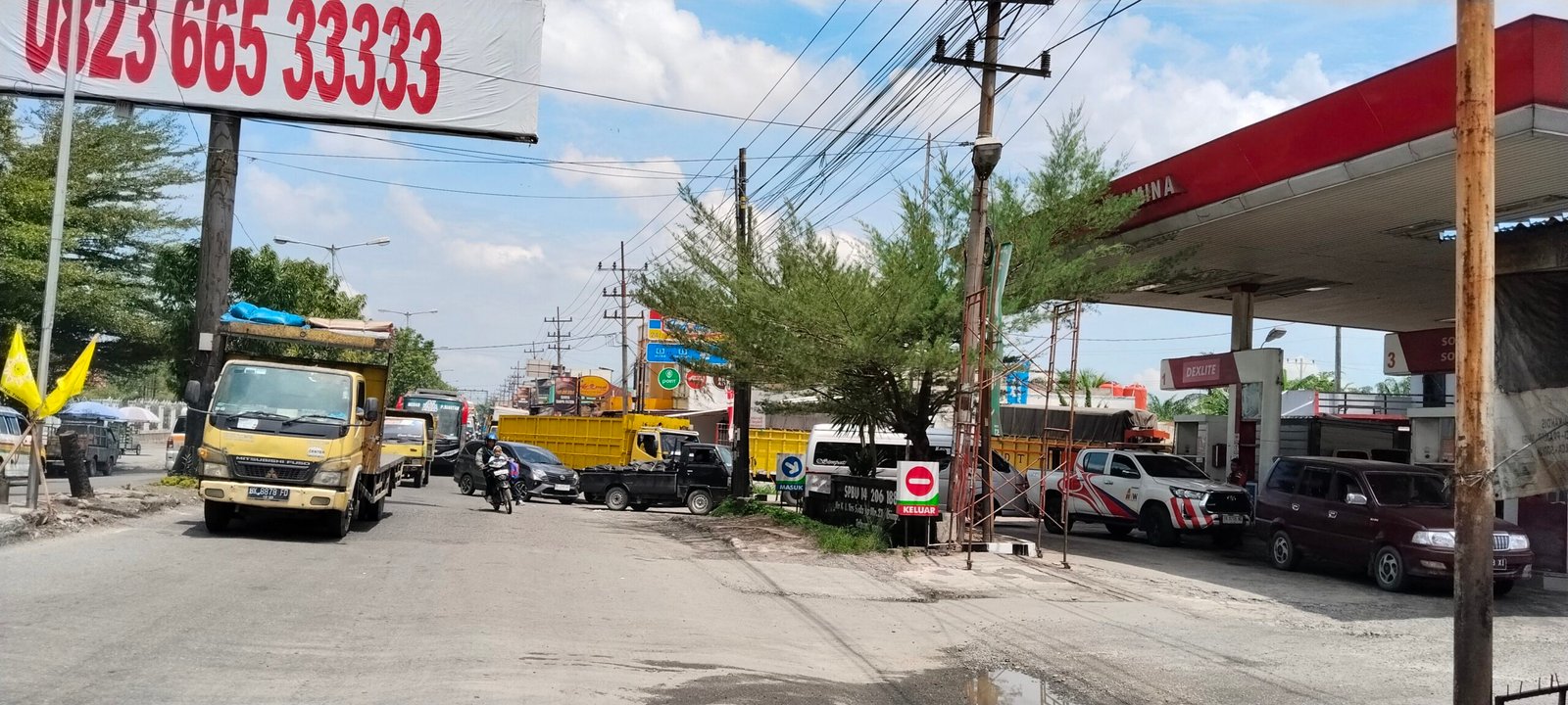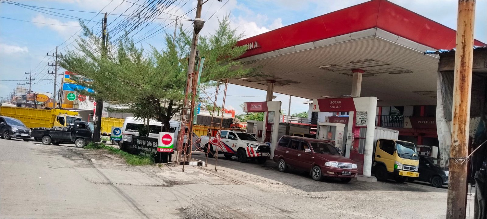 Beginilah tampak antrian panjang di salah satu SPBU yang ada di jalan lintas Yos sudarso simpang Beo kampung lalang,kota tebing tinggi pada kamis (16/10/25), tampak puluhan kenderaan dari berbagai jenis sabar mengantri untuk mendapatkan solar.