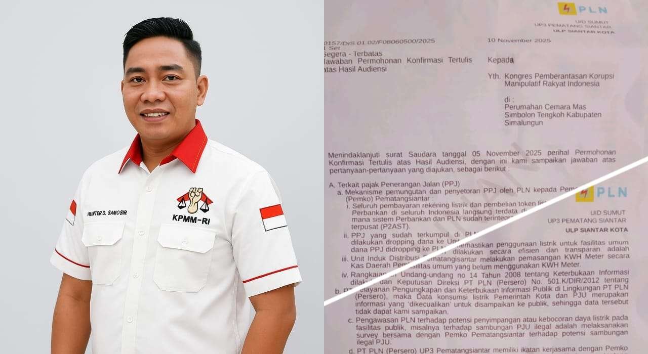 Kongres Pemberantasan Korupsi Manipulatif Rakyat Indonesia (KPKM RI) menduga adanya ketidakterbukaan dan potensi penyimpangan dalam pengelolaan Pajak Penerangan Jalan (PPJ) dan Penerangan Jalan Umum (PJU) di wilayah Kota Pematangsiantar. Dugaan ini muncul setelah KPKM RI menerima jawaban tertulis PLN UP3 Pematangsiantar ULP Siantar Kota tertanggal 10 November 2025, yang dinilai tidak menunjukkan transparansi penuh dalam pengelolaan dana dan aset penerangan jalan.Selasa, (11/11/25).