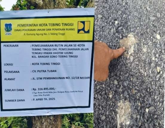 Diketahui, proyek pengaspalan jalan hotmix di Jalan Pulau Irian tersebut bersumber dari Anggaran Pendapatan dan Belanja Daerah (APBD) Kota Tebing Tinggi Tahun Anggaran 2025. Proyek ini dilaksanakan oleh CV Putra Tuban dengan nilai anggaran sebesar Rp316.895.000.